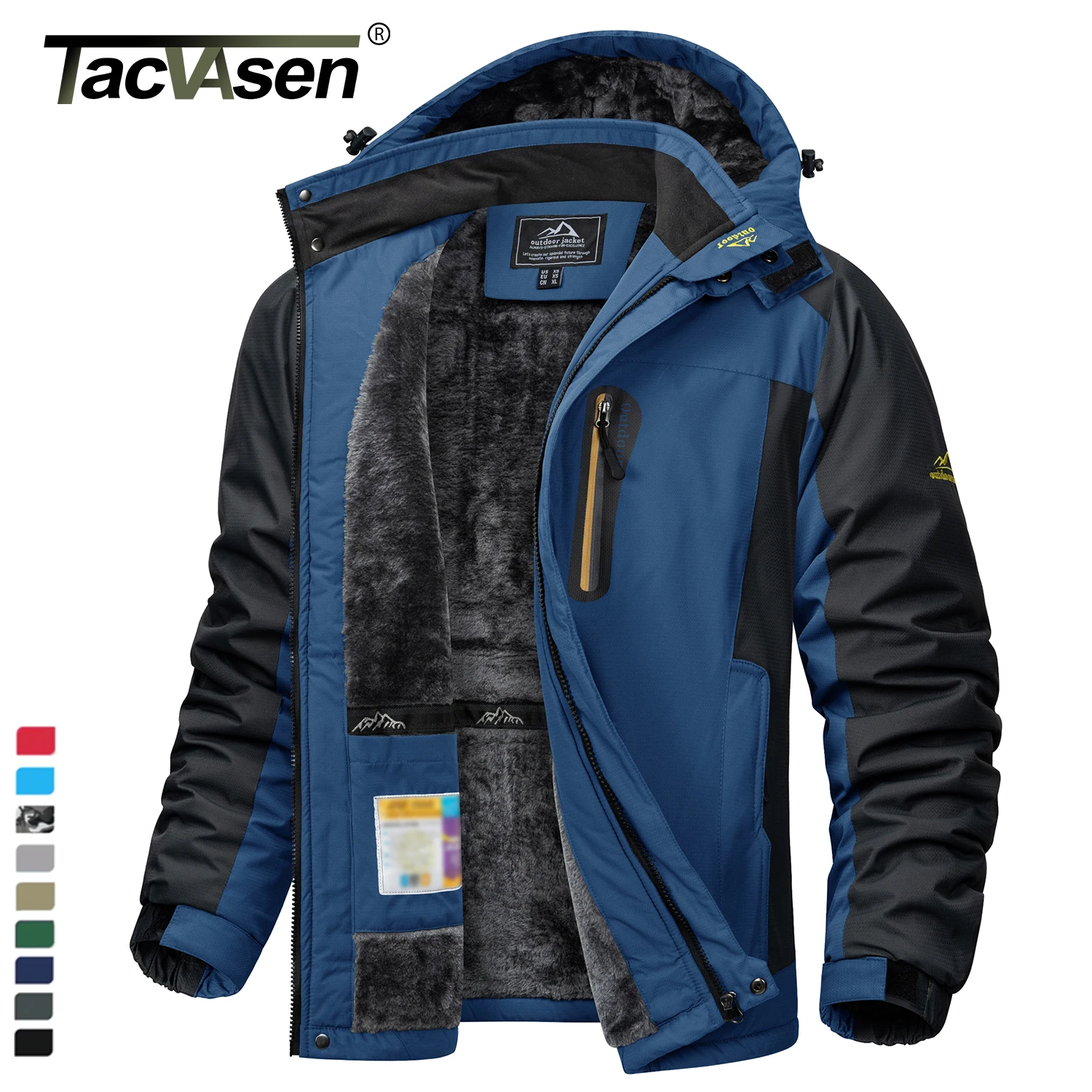 TACVASEN Winter Heavyweight Fleece Lined Parka Waterproof Men Ski Snowboard Jackets Windproof Removable Hoodie Coats Windbreaker